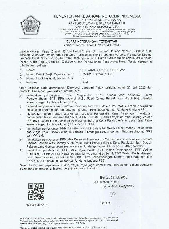 Bergulirnya globalisasi dan system Perdagangan Bebas Dunia (WTO) khususnya di Asia telah hadir di hadapan kita. Peranan aktif dunia udsaha dan era perdagangan bebas sangatlah penting. Terutama dalam mendukung pertumbuhan ekonomi nasional setelah 5 (lima) tahun berdiri dengan nama ARAH SUKSES BERSAMA. Berkembang menjadi mechanical dan electrical kontraktor seiring dengan perkembangan perusahaan yang